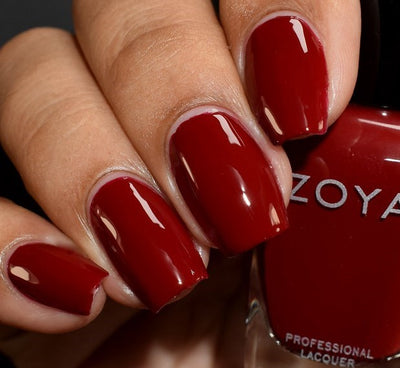 3. Stendi lo smalto Zoya nel colore desiderato, applicando il numero di strati necessario per una copertura completa.