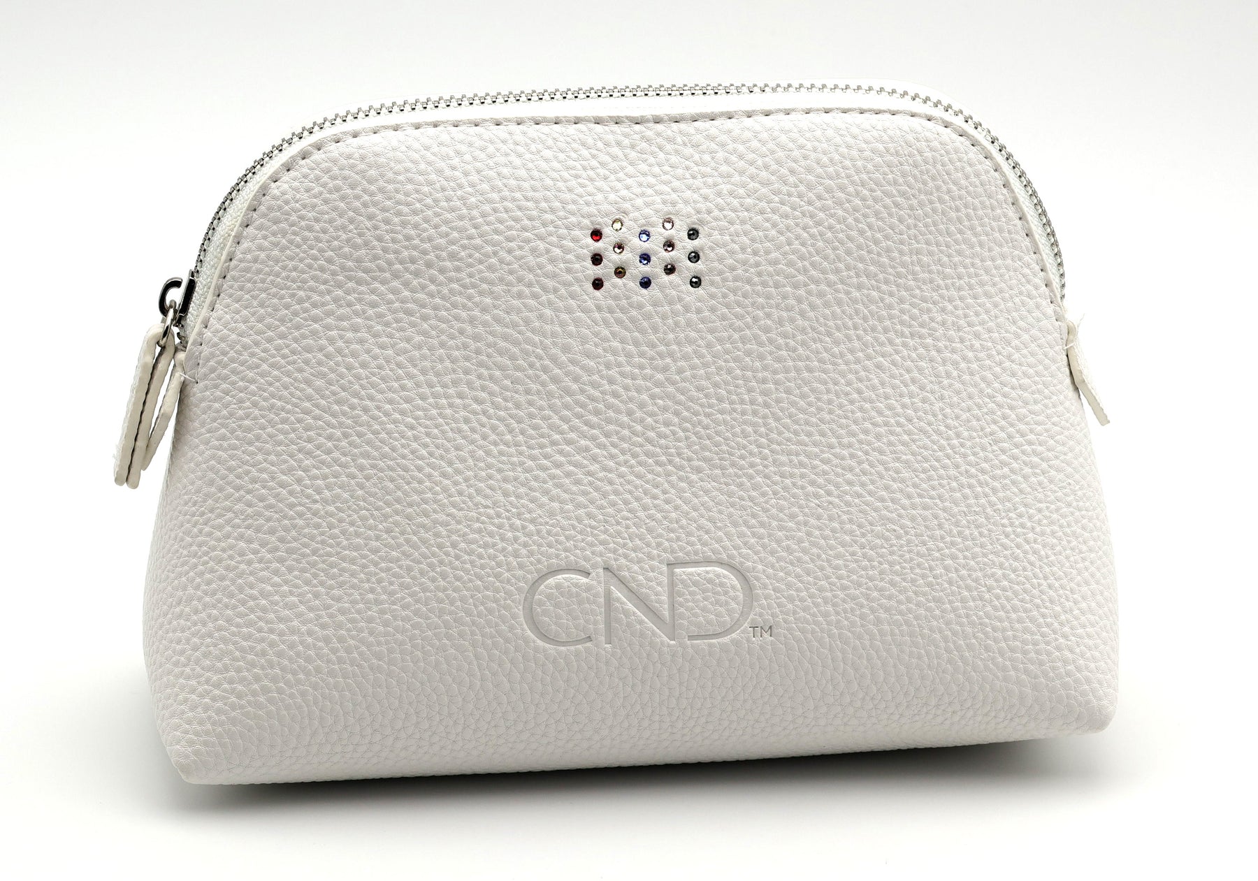 CND beauty bag – Pochette in pelle bianca con cristalli Swarovski