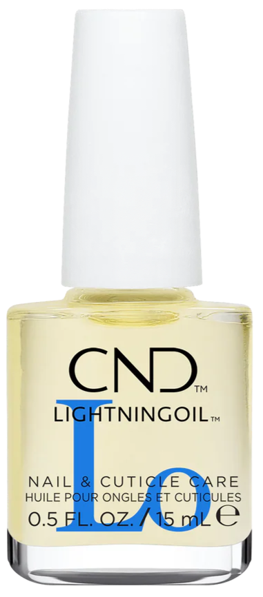 cnd lightningoil is a cutting-edge, ultra-lightweight nail and cuticle oil designed with lightning-fast absorption technology. this fast-absorbing formula delivers immediate moisture without leaving residue. enriched with vitamin e and naturally light oils such as copra, rosehip, and rice bran oils, it provides breathable hydration that’s ideal for daytime use. the uplifting scent of yuzu and ginger gives a refreshing start to your nail care routine. 100% vegan formula.
